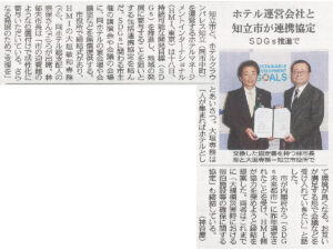 「知立市とHMIとの連携と協力に関する包括連携協定」を締結いたしました。 2022-04-18 最終更新日時 : 2023-09-01 s.wakabayashi@hmi.co.jp 「知立市とホテルマネージメントインターナショナル株式会社との連携と協力に関する包括連携協定」を締結 知立市とホテルクラウンパレス知立は18日持続可能な開発目標(SDGs)を推進し、地域の発展に寄与することを狙いとする包括連携協定を締結しました。
